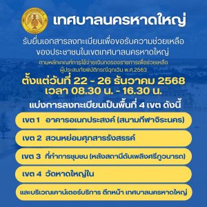 Cr. เว็บไซต์แนะนำข้อมูลลงทะเบียนรับความช่วยเหลือจากเทศบาลนครหาดใหญ่