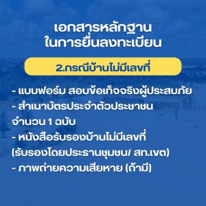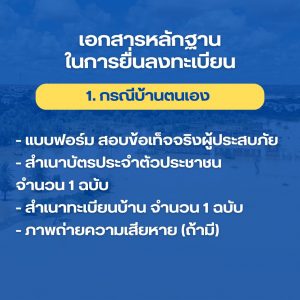 – สำเนาทะเบียนบ้านหลังที่ประสบภัย จำนวน 1 ฉบับ